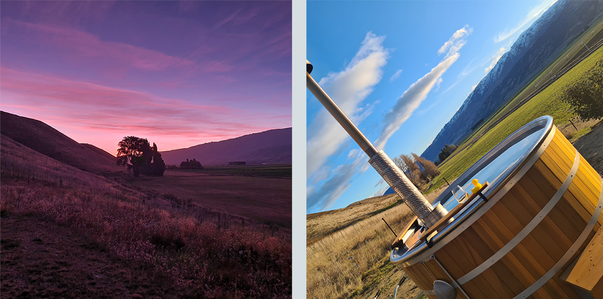 Boutique accommodation with stunning views of the Pisa Range and Southern Alps in the distance.